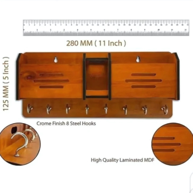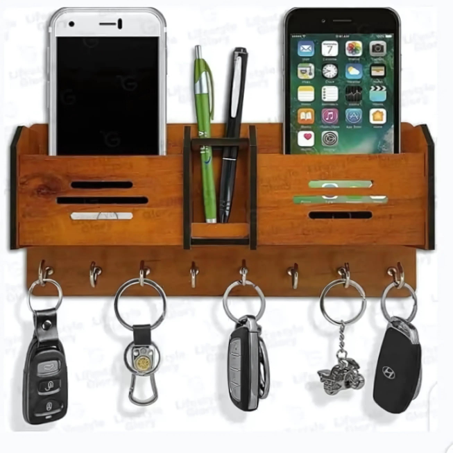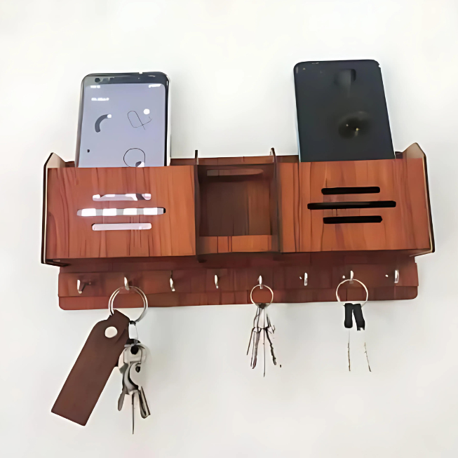Our wooden key holder and charging station isn’t just an organizer—it's a statement piece that enhances the aesthetics of any space. Its versatile design and superior craftsmanship make it a must-have for those who value both style and order.